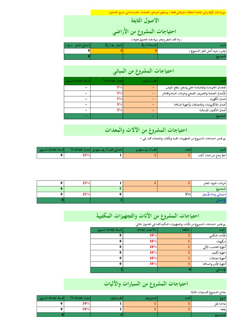 النماذج المالية لدراسة جدوى