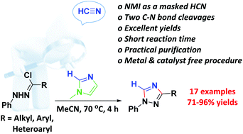 A Formal 3 2 Cycloaddition Reaction Of N Methylimidazole As A Masked Hydrogen Cyanide Access To 1 3 Disubstitued 1h 1 2 4 Triazoles Chemical Communications Rsc Publishing